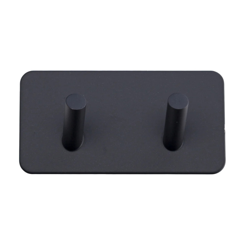 Μοντέρνος αυτοκόλλητος τετράγωνος διπλός γάντζος από ανοξείδωτο ατσάλι με φινίρισμα μαύρο ματ,