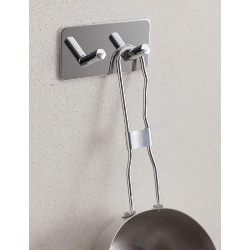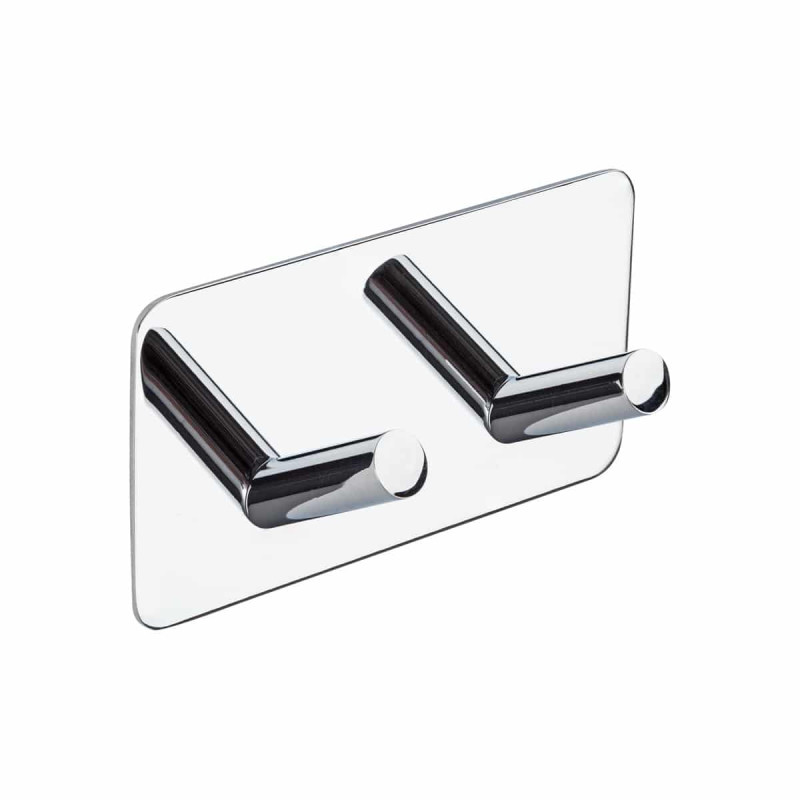 Αυτοκόλλητη κρεμάστρα "Pisa" SS304 με 2 άγκιστρα σε νίκελ γυαλιστερή απόχρωση