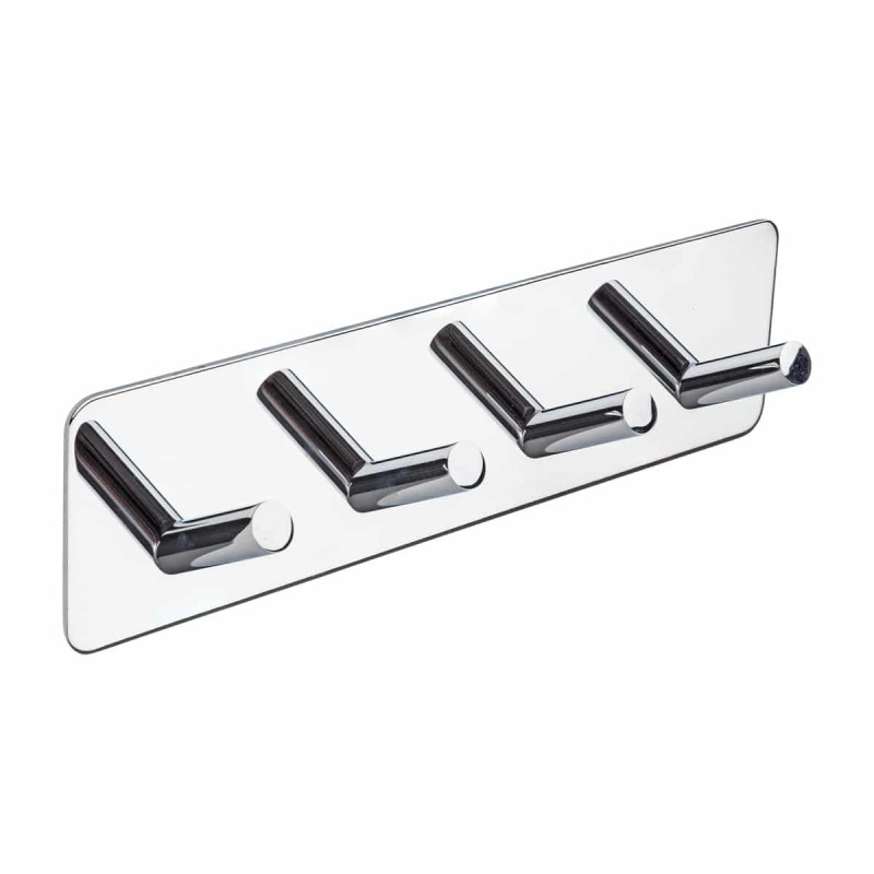 Αυτοκόλλητη κρεμάστρα "Pisa" SS304 με 4 άγκιστρα σε νίκελ γυαλιστερή απόχρωση