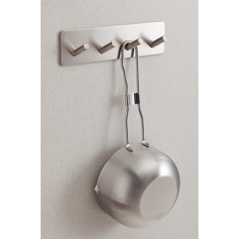 Αυτοκόλλητη κρεμάστρα "Pisa" SS304 με 4 άγκιστρα σε νίκελ βουρτσισμένη απόχρωση